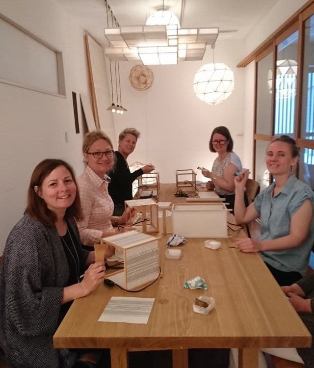 「あかりワークショップ」では、創業以来百十余年に渡り受け継いできた木工職人の技を活かした「手作り行燈」を、その日のうちに「自分だけのオリジナル行燈」としてお持ち帰りいただくことができます。