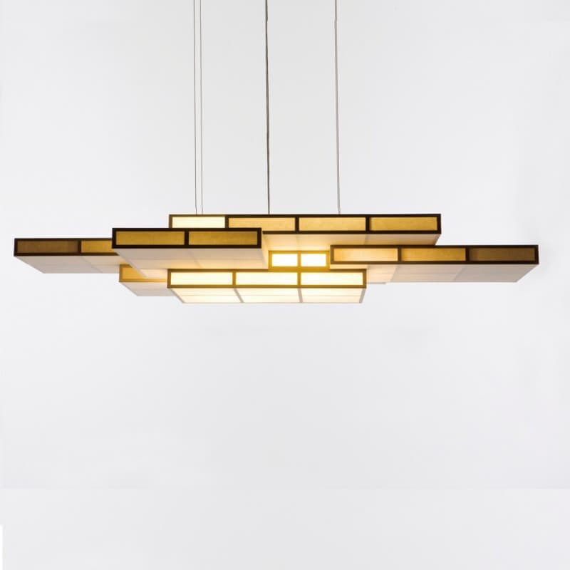 ユニークなデザインはそのまま「光の表情」を楽しむ仕掛けです。光源からの光は和紙をソフト透過する光と隙間からストレートに広がる光に分かれ、室内に光と影の美しいパターンを描きます。