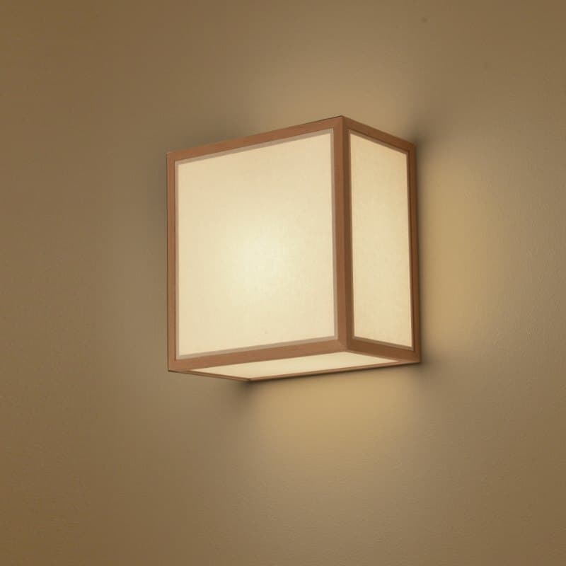和空間が基本とする直線的な構成の壁面に合うように、端正にデザインされた正方形ブラケットです。細身のフレームに貼られたシェードには手漉き土佐和紙を使用。無地ですが光を透かすと、和紙の糸目が現れ、表情豊かな拡散光が空間を充たします。数寄屋建築、茶室に最適な本格的な和照明です。