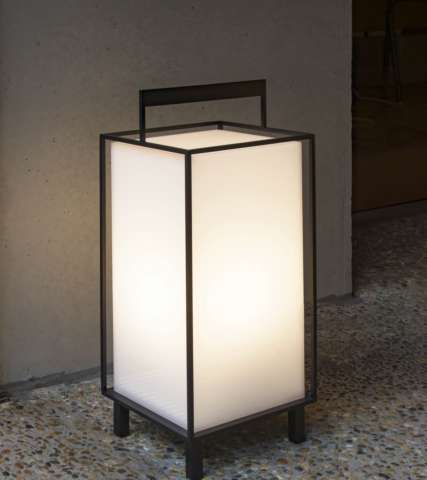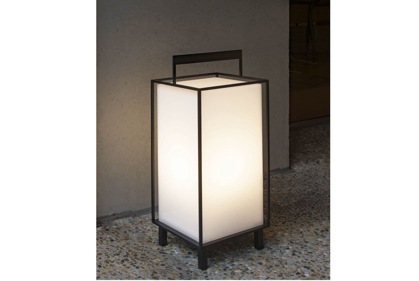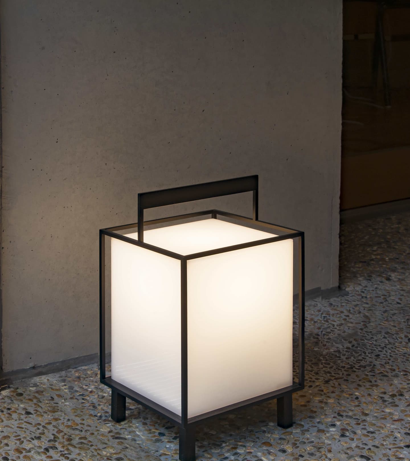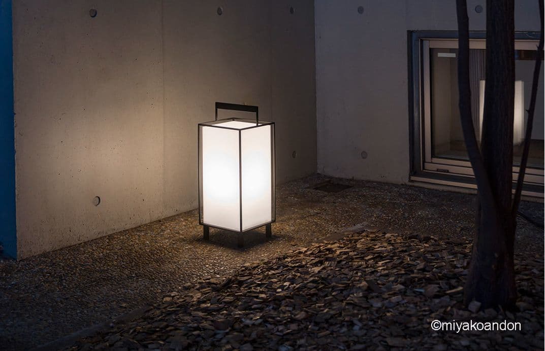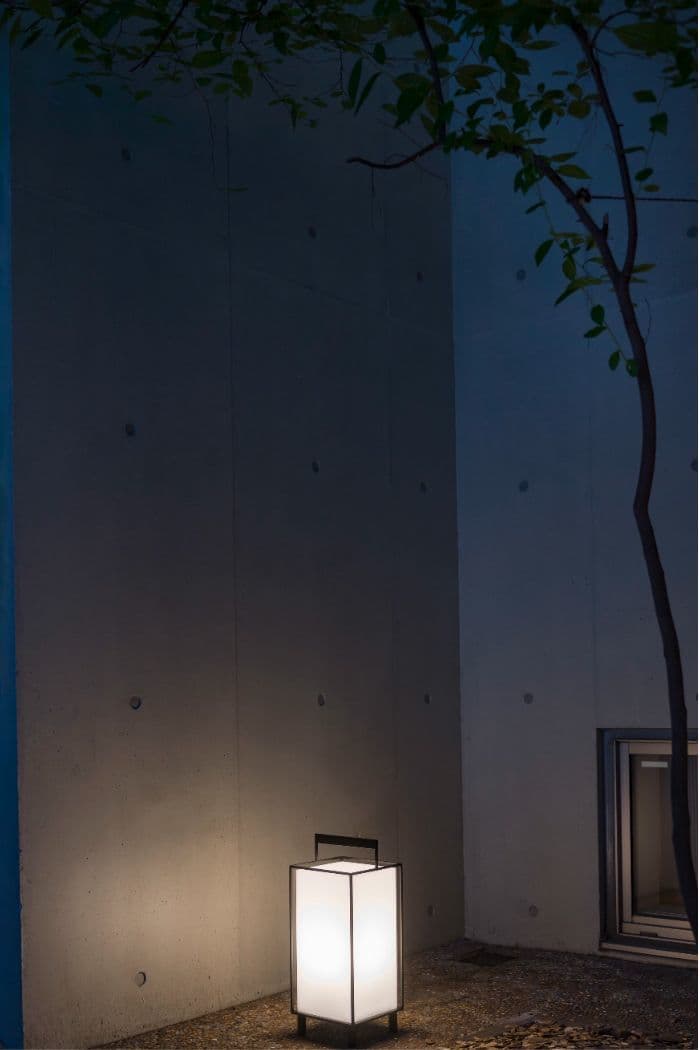 日本の伝統的なあかりである「露地行灯」のスタイルを現代に生かし、和様を問わず様々な建築空間に調和するようにステンレスのフレームを極限まで細く仕上げ、シンプルな美を追求したエクステリアライトです。「行燈」は文字通り「行く(動く)」あかりで、コンセント付きキャプタイアの長さ」の範囲で自由に設置できます。取っ手がつけられたデザインは実用上はもちろんのこと「移動するあかり」を強く印象付けます。