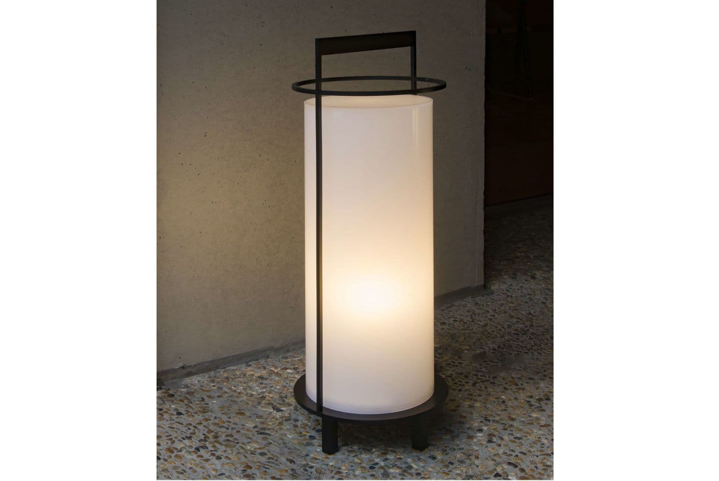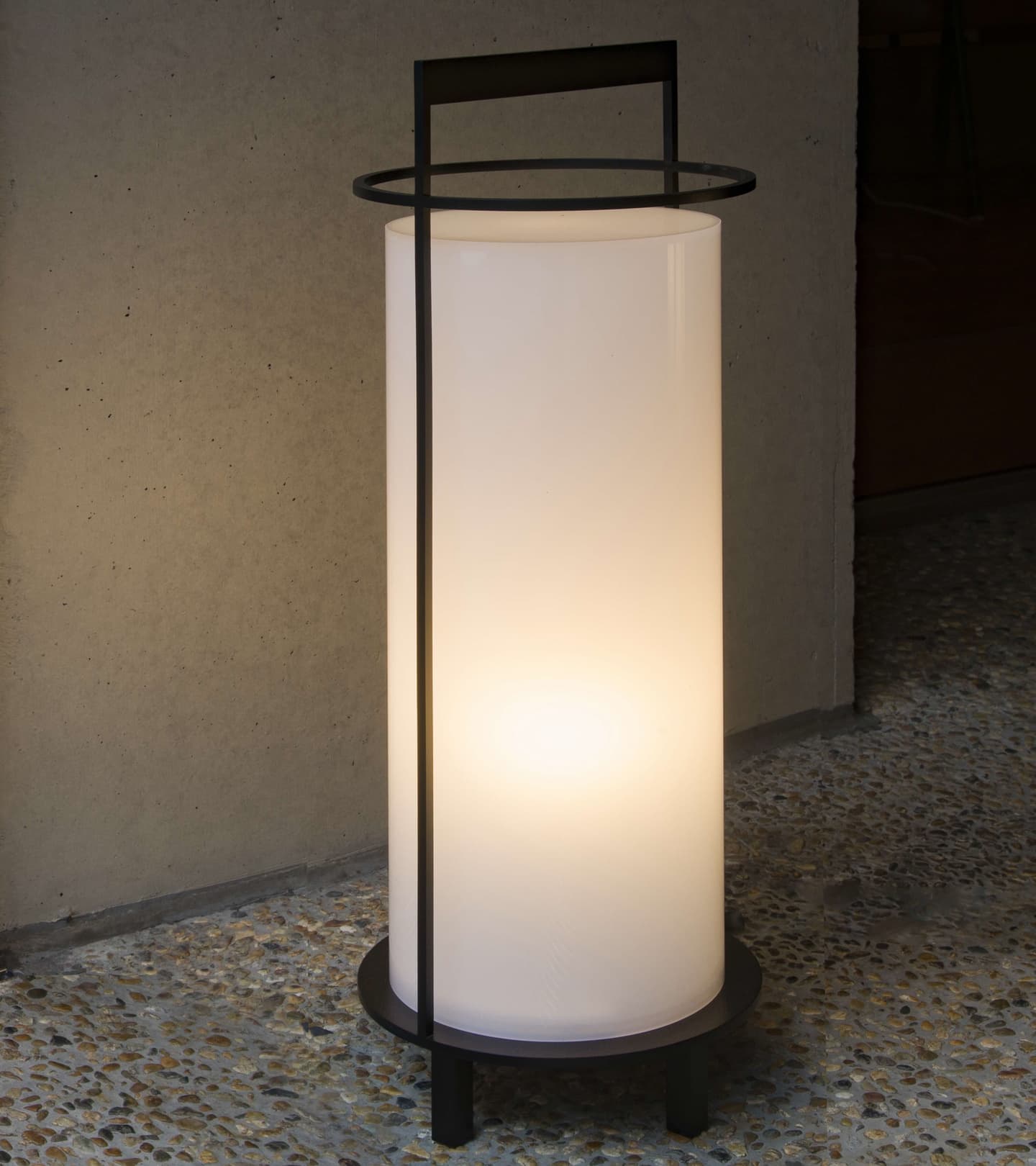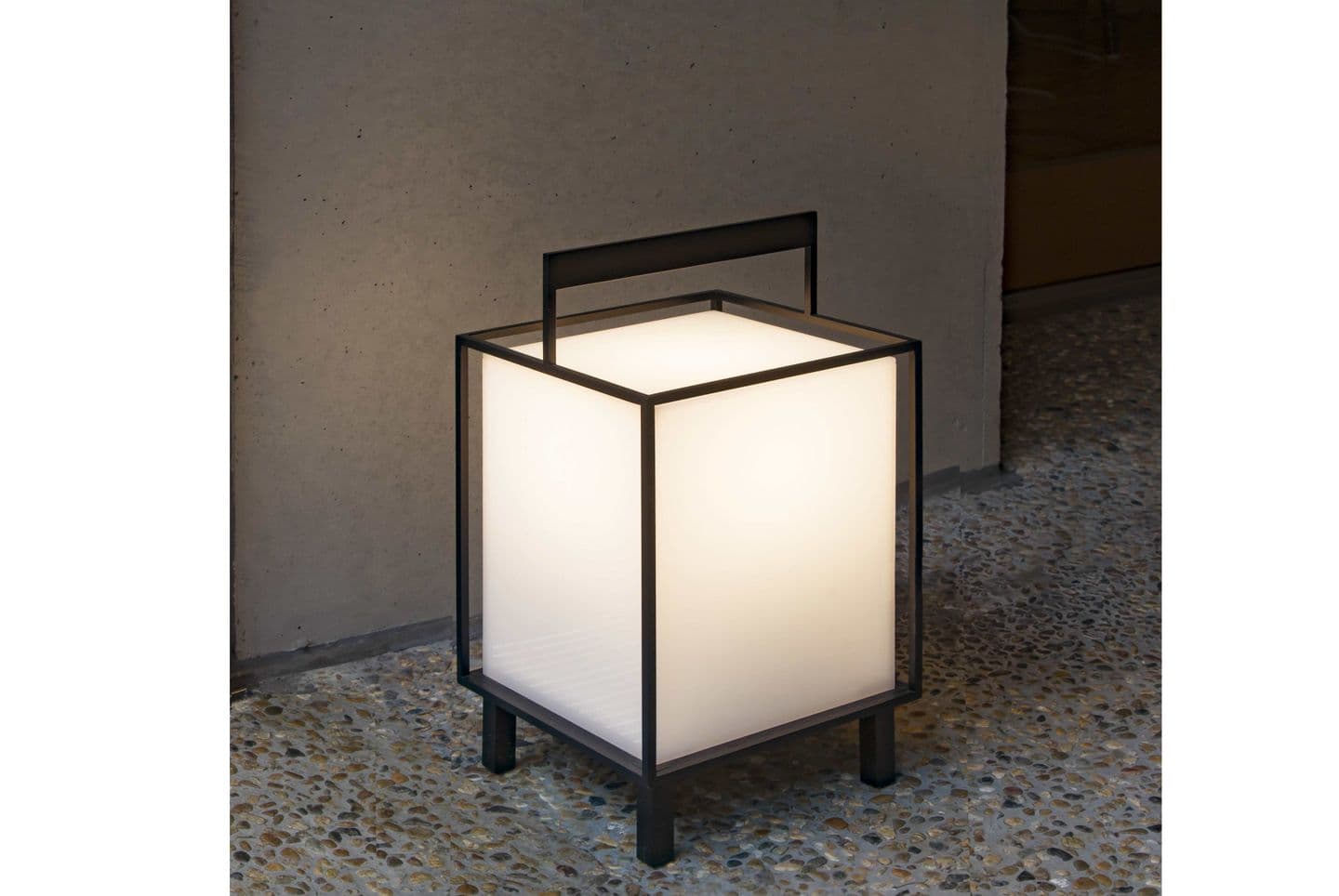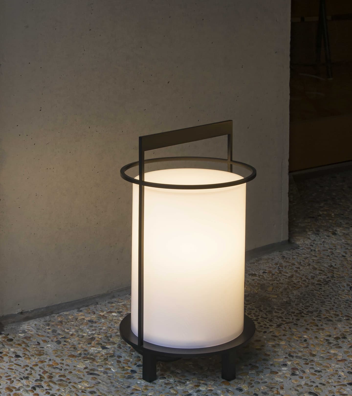 日本の伝統的なあかりである「露地行灯」のスタイルを現代に生かし、和様を問わず様々な建築空間に調和するようにステンレスのフレームを極限まで細く仕上げ、シンプルな美を追求したエクステリアライトです。「行燈」は文字通り「行く(動く)」あかりで、コンセント付きキャプタイアの長さ」の範囲で自由に設置できます。取っ手がつけられたデザインは実用上はもちろんのこと「移動するあかり」を強く印象付けます。