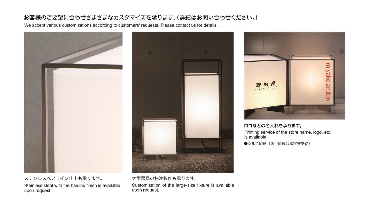 | 材料 | ステンレス黒色塗装仕上げ・和紙調アクリル |