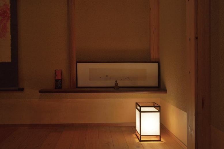 A lamp faithfully reproduced the traditional lantern of Edo period. Full moon or crescent light through the windows is used as a nightlight when the outer box is placed over, having both functional and emotional aspects.