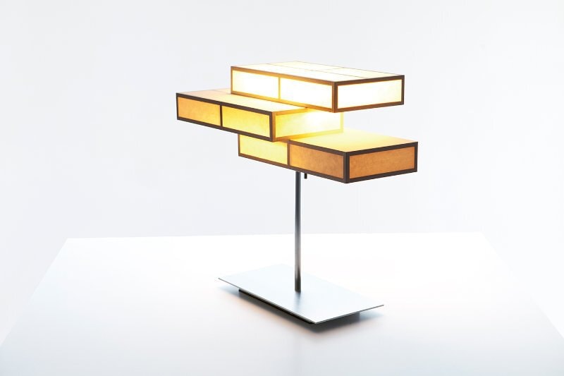 繊細な木組みに和紙を張り込む伝統技術と、コンテンポラリーなデザインが融合し、白い箱が重なり合うことから生まれる表情は、月明かりが雲の群れに陰影を与えているかのよう。やさしい光は、時をゆっくりと丁寧に過ごす穏やかな感覚を与えます。