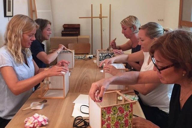 木枠などの下ごしらえ済みですので他の材料や道具などの持ち物も必要なく、プロの指導の下どなたにも手軽かつ安心してお作りいただくことができます。